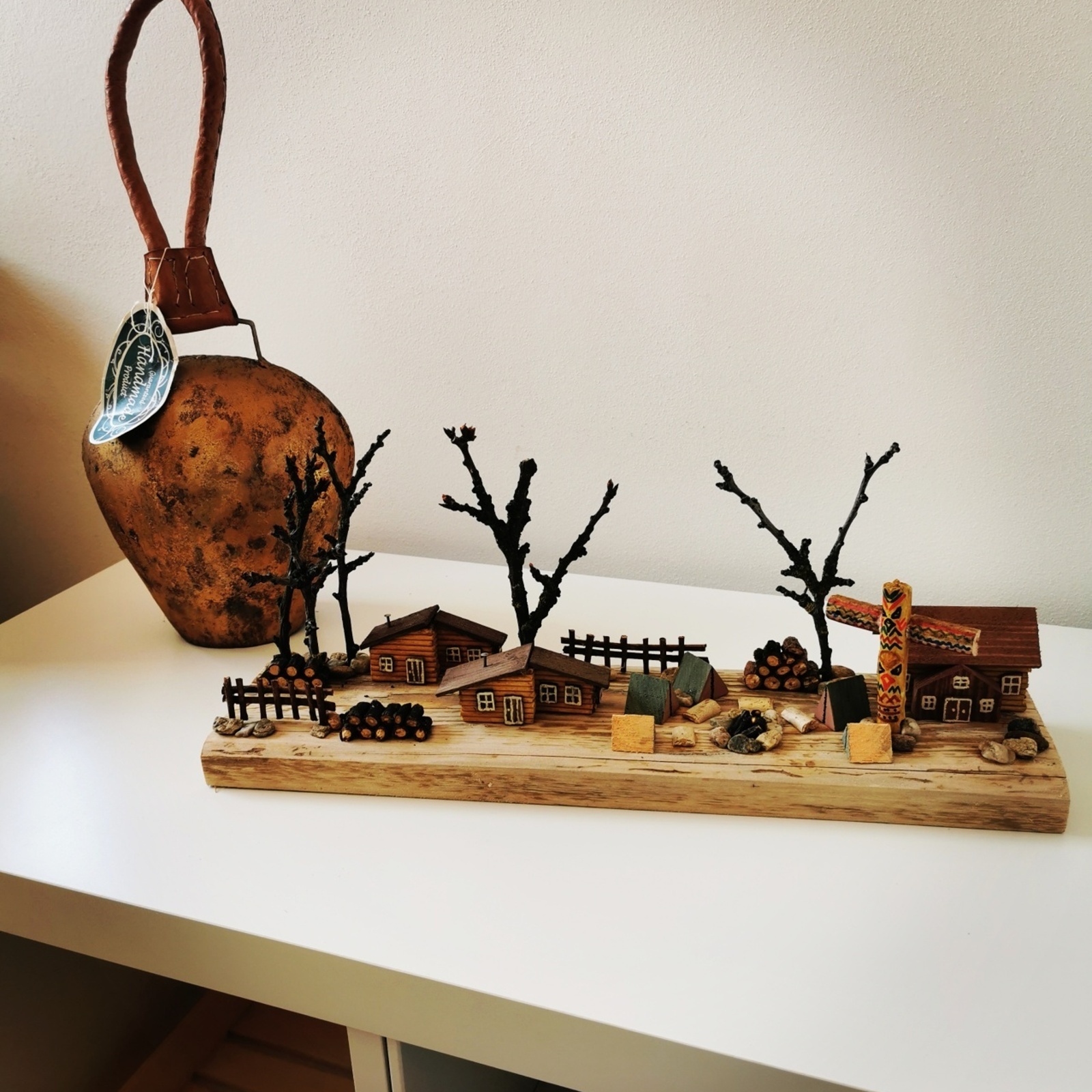 Naše nová dekorace v podobě trampské osady přináší do vašeho domova atmosféru přírody, dobrodružství a venkovského kouzla. Toto jedinečné umělecké dílo je vytvořeno s láskou a pečlivostí, aby vám poskytlo autentický pohled do prostředí trampského kempu nebo ranče.