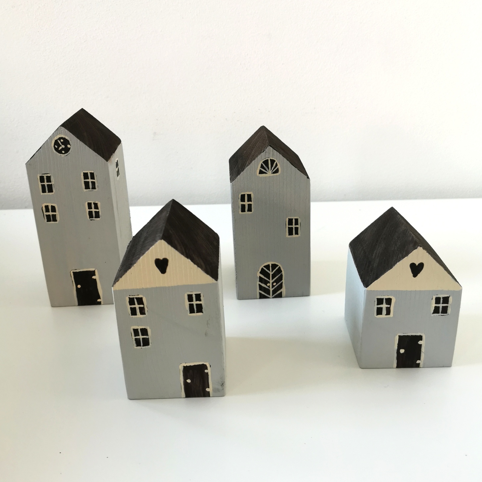 Dřevěné dekorace ve tvaru domečků - menší (4kusy)