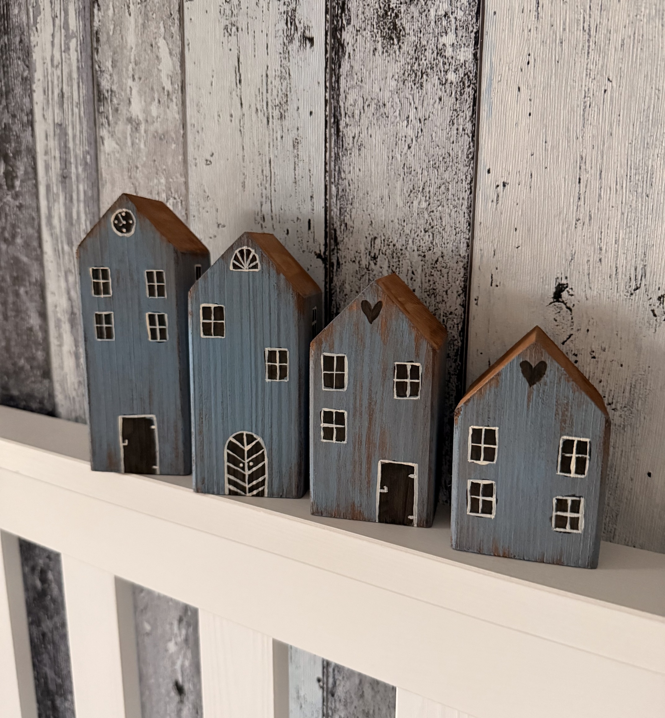 Dřevěné dekorace ve tvaru domečků - větší (4kusy)