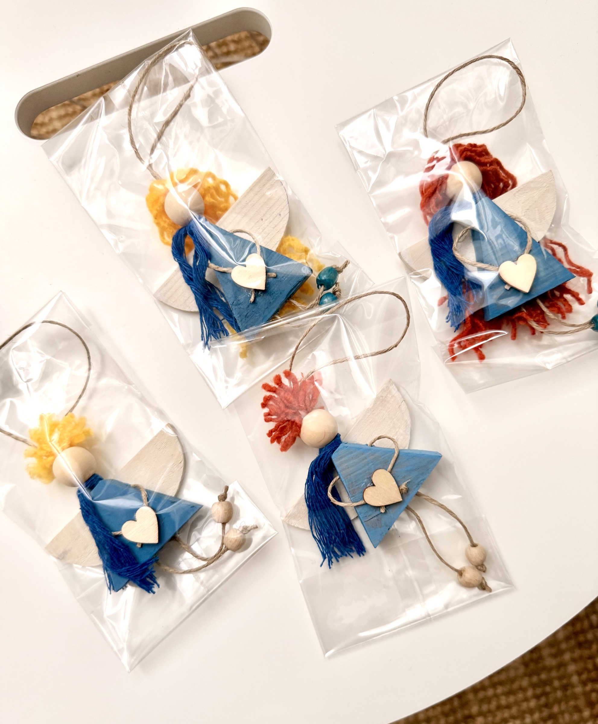 Přineste do svého domova jemnou a něžnou atmosféru s těmito malými ručně vyrobenými andílky. Každý andílek je vyroben z dřeva a bavlny, s pečlivým důrazem na detaily – od tvaru křídel až po drobné vlásky. Andílci jsou ideální na zavěšení na stromeček, záclonu nebo madlo šuplíku či skříně a skvěle poslouží jako drobný dárek pro kolegy, přátele či milovanou osobu.