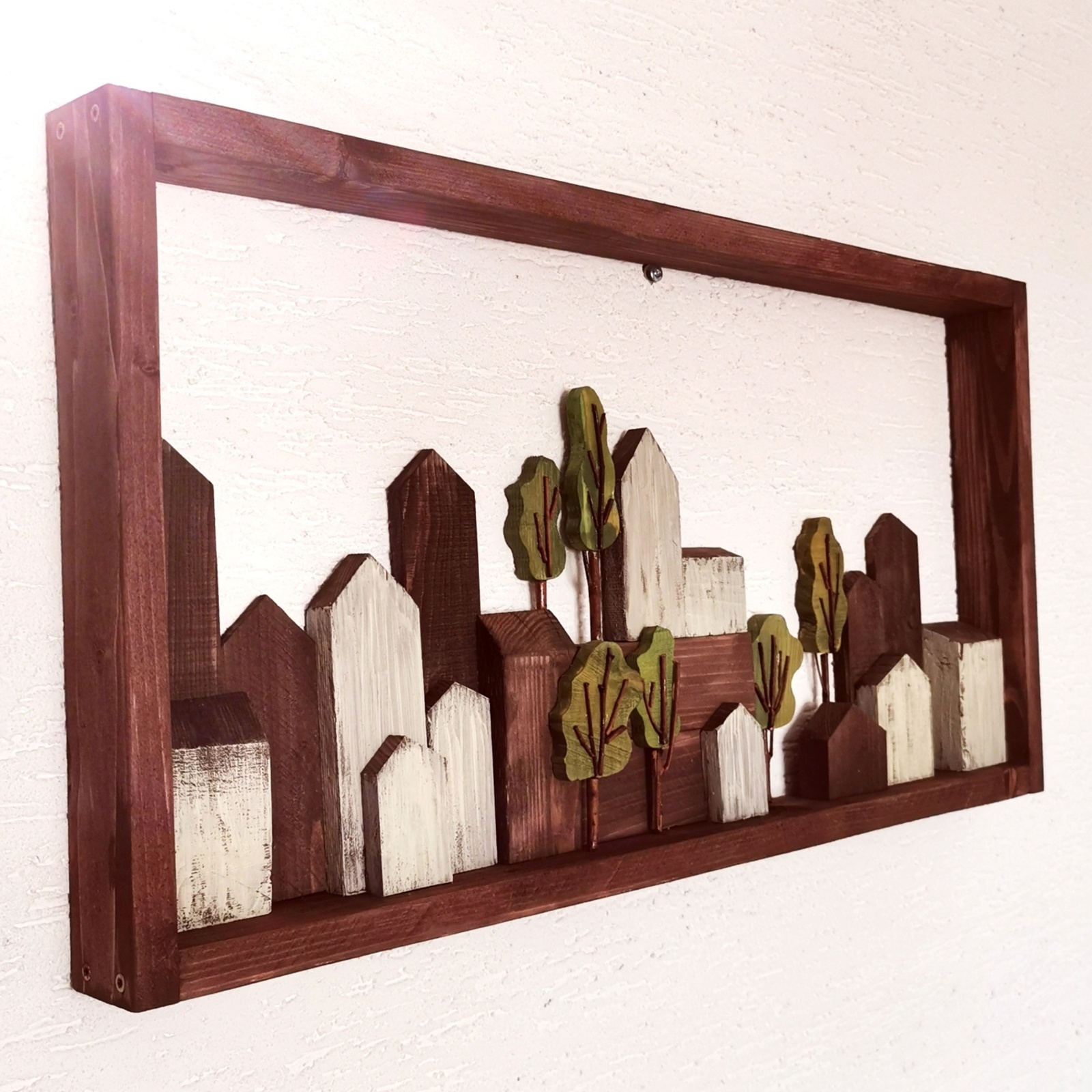 S láskou vyrobený dřevěný obraz s motivem malého městečka je dalším důkazem naší práce, která spojuje kvalitu s uměleckým citem. Přiveďte si do svého domova kousek romantiky a nostalgického kouzla s tímto úžasným uměleckým dílem!