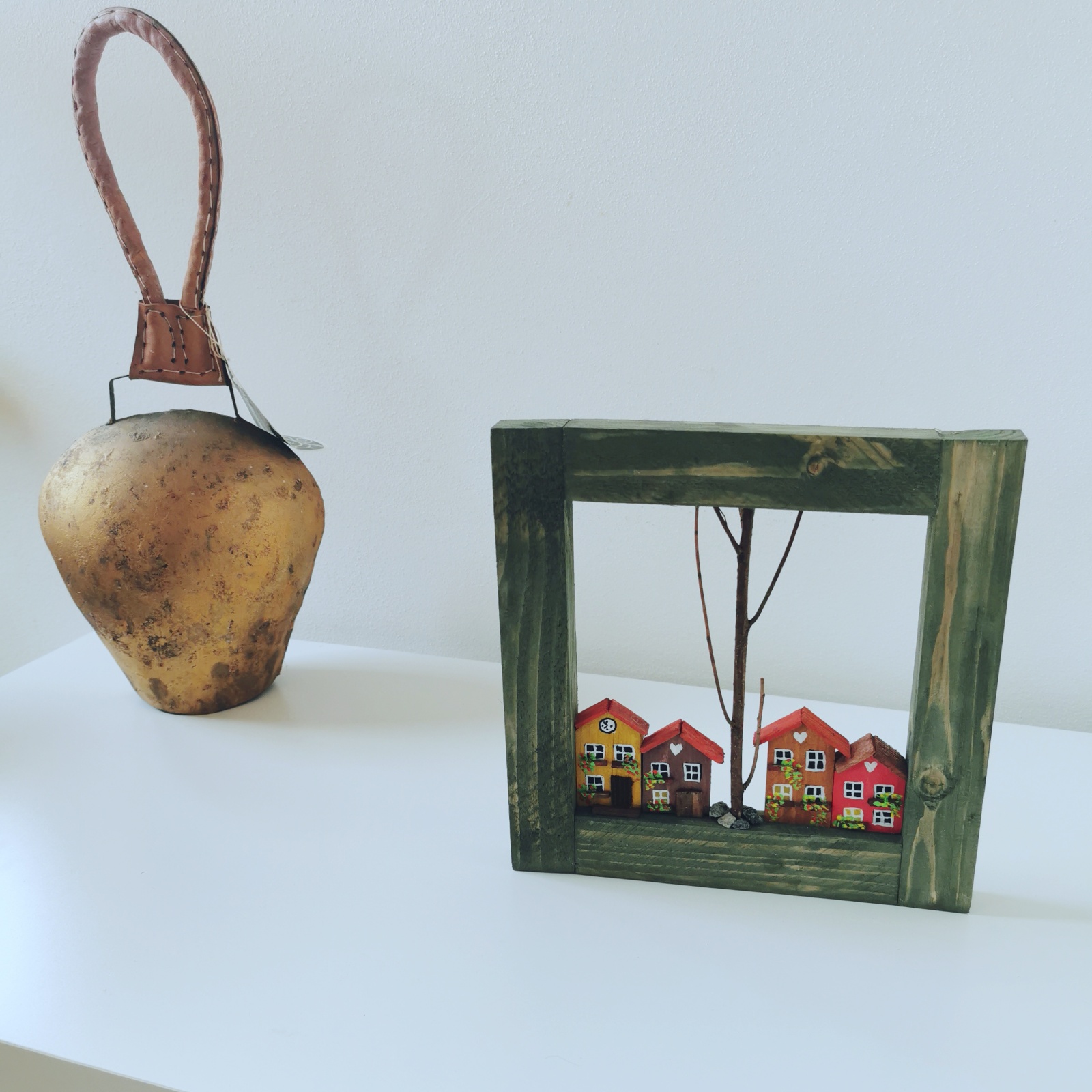 - Dřevěný obrázek s domečky