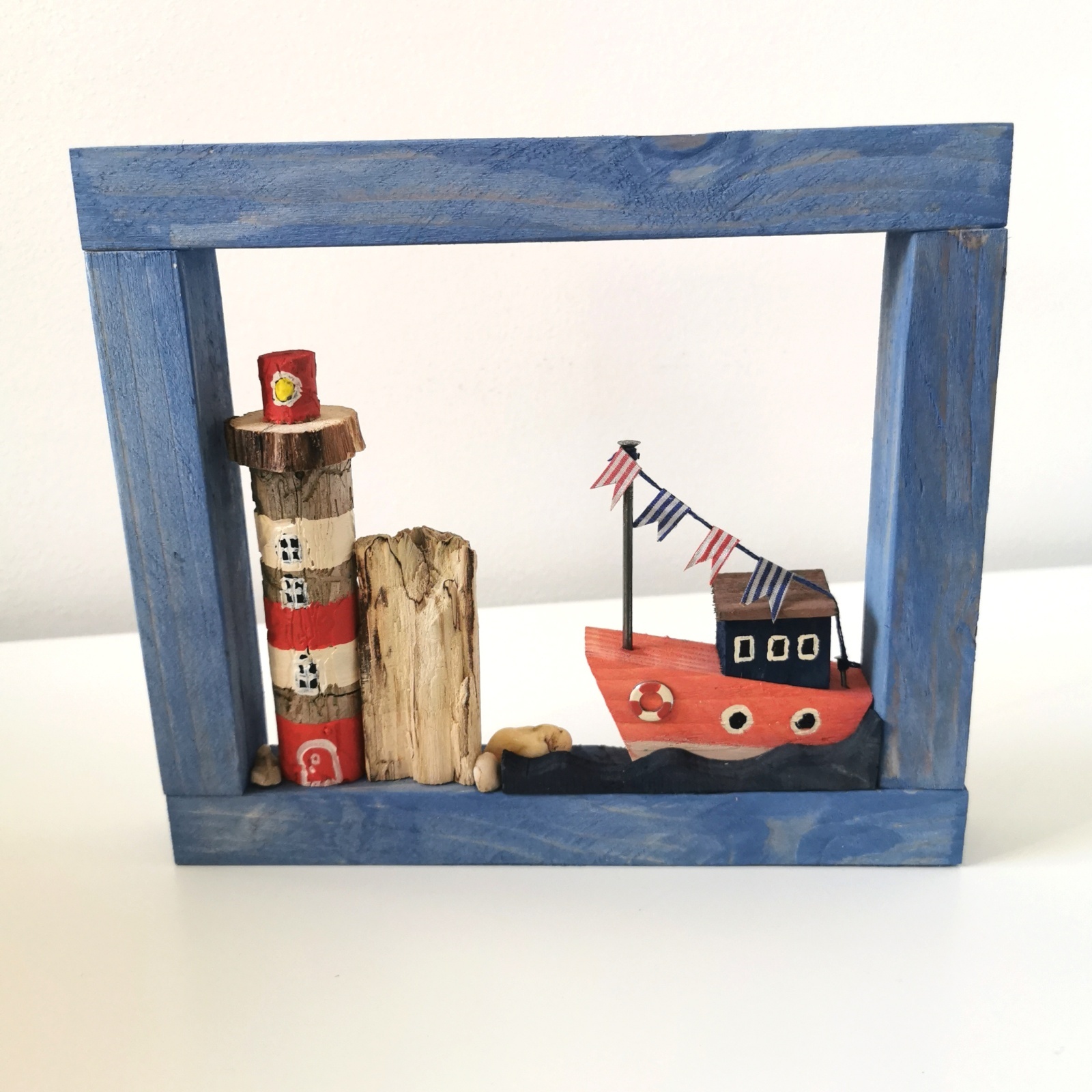 3. Dřevěný obrázek s majákem a lodí