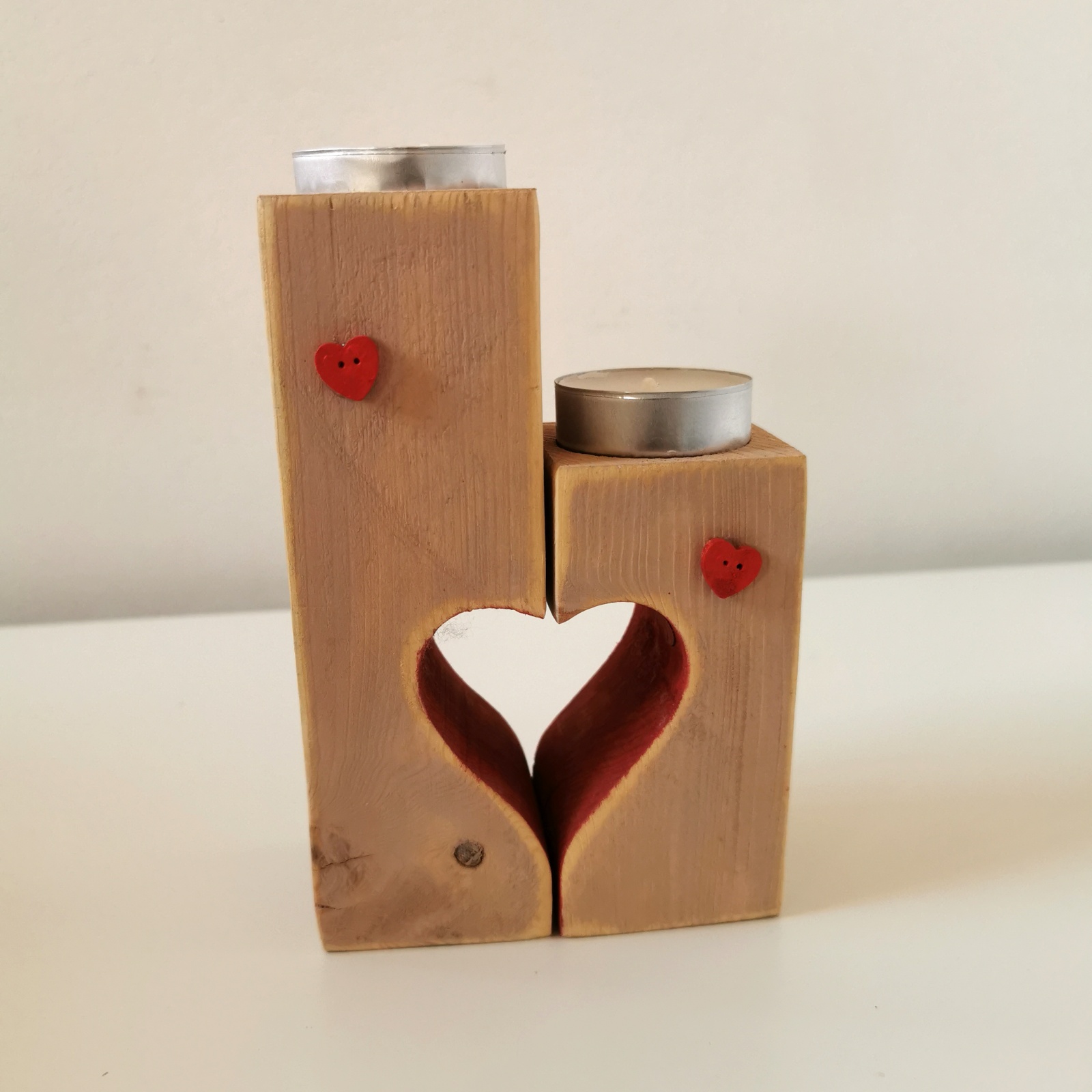 Dřevěný svícen se symbolem srdce pro 2 čajové svíčkyskladem250 Kč/ ks207 Kč bez DPH