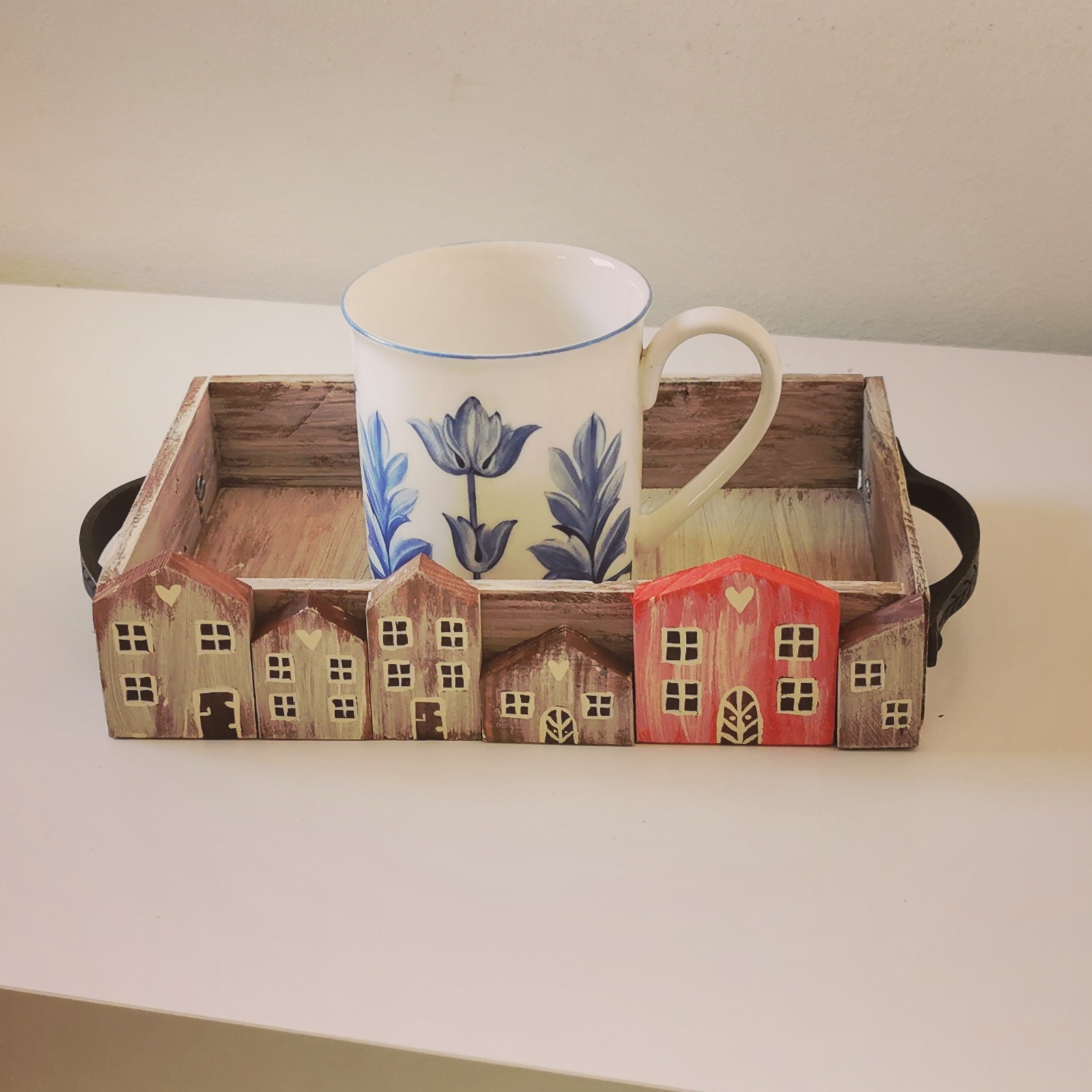 - Dřevěný tácek s vintage kovovými madly