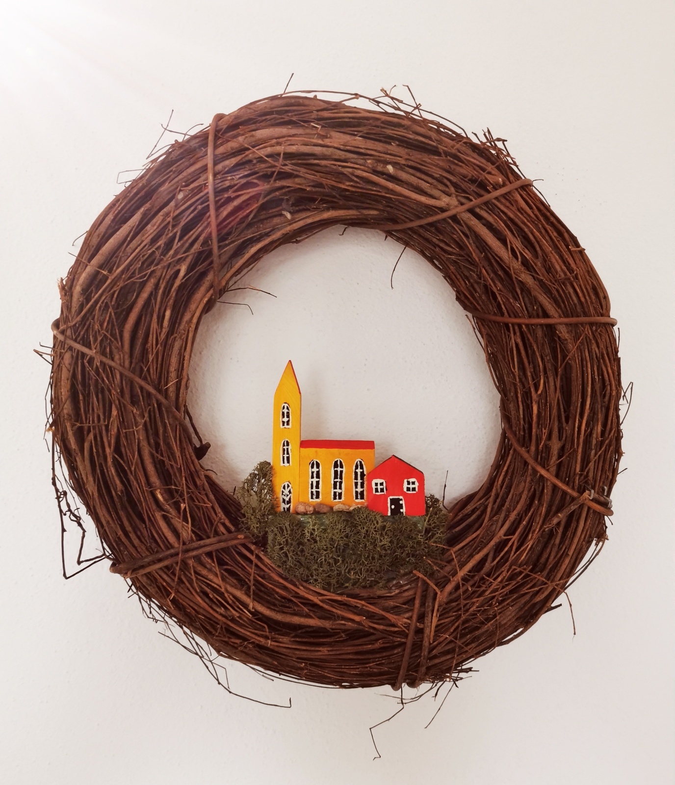 🌿 Přírodní krása: Každý věneček je vytvořen z kvalitního proutí a doplněn o dřevěný kostelíček a domeček, což přináší do vašeho domova přírodní krásu.
