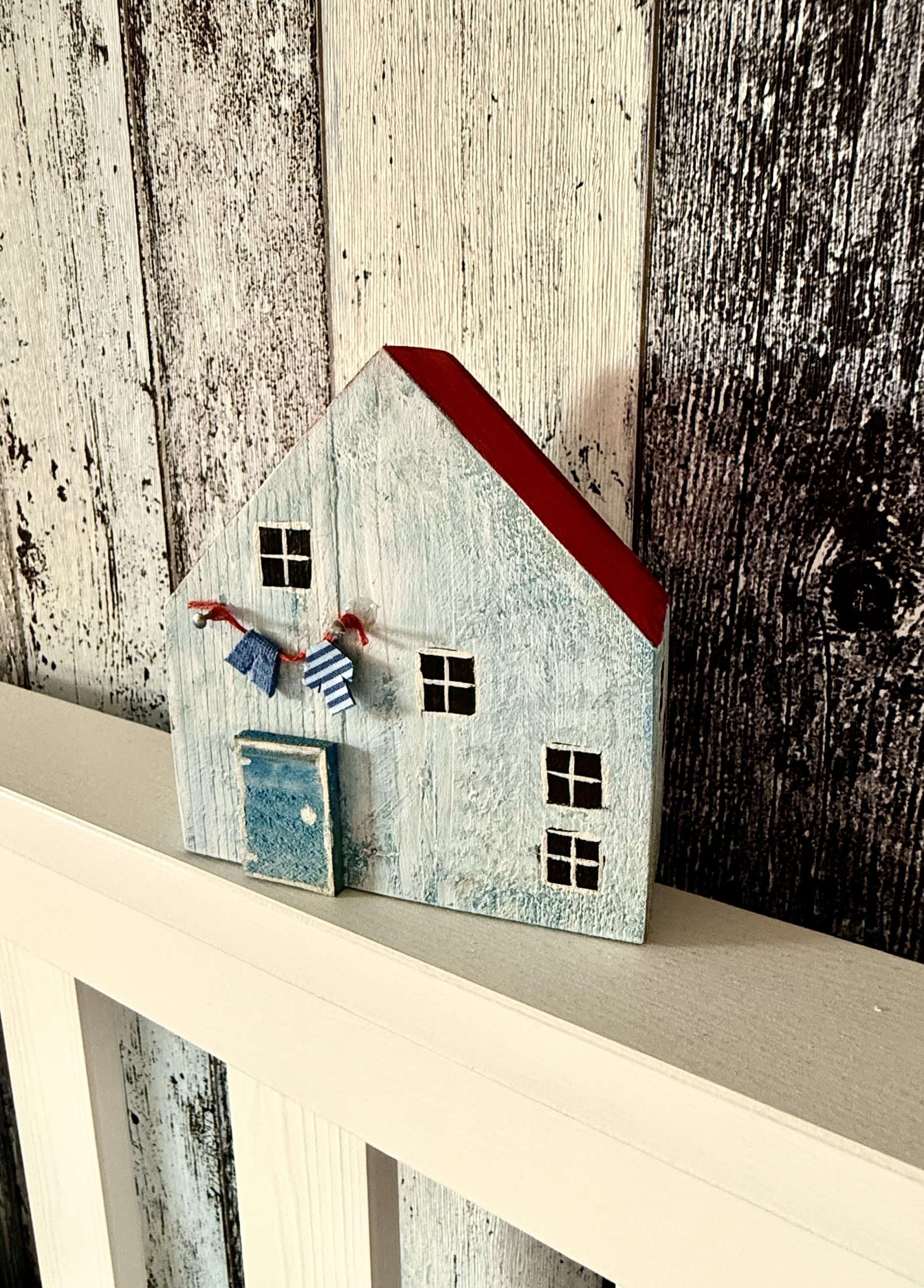Vneste do svého domova jemný nádech venkovské romantiky s naším novým dřevěným domečkem v kombinaci světle modré a bílé barvy, doplněným o výraznou červenou střechu. Tento roztomilý kousek působí, jako by byl vytržený z malebné přímořské uličky – s okny, malovanými detaily a drobnou šňůrou s prádlem, která mu dodává hravý charakter.