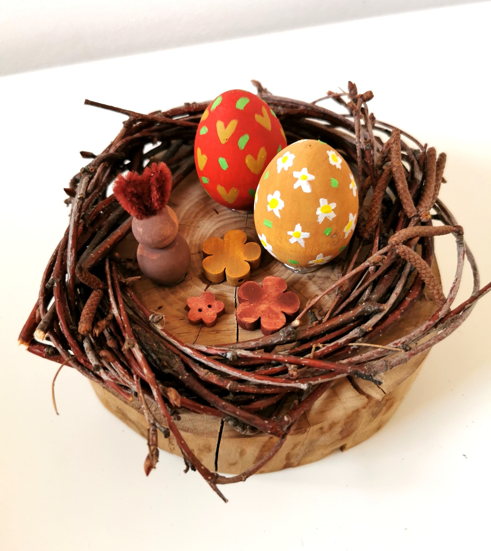 - Velikonoční dekorace na slivoňovém dřevě s kraslicemi