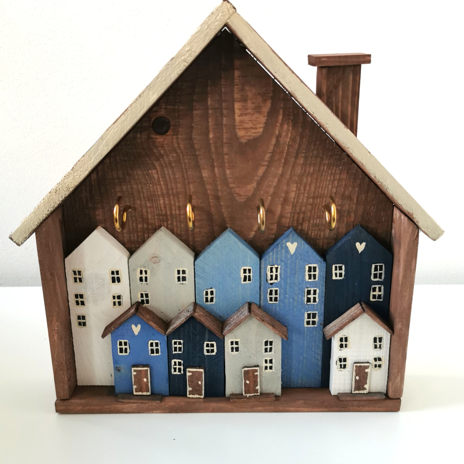 Seznamte se s naším novým výrobkem, věšák na klíče - Velký dům s komínem! Tato originální a praktická dekorace ze dřeva nese v sobě nejen praktický význam, možnost zavěšení klíčů, ale také přináší do vašeho domova kouzlo a vytváří jedinečný vstupní prostor. Podívejte se na detaily: